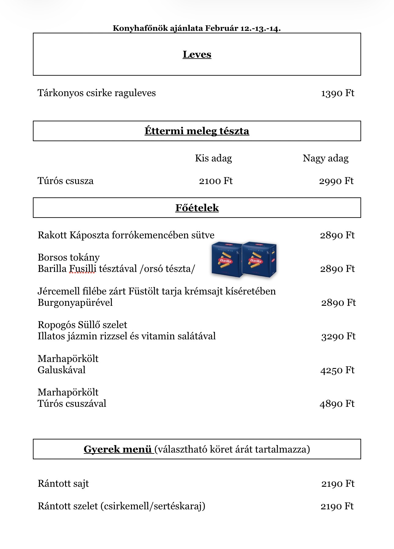 Nincs kedved főzni? Házhozszállítással ízletes ételeket szállítunk házhoz. Intézményünk az alábbi felszereltséggel rendelkezik: légkondicionálás és parkoló. Rendezvények lebonyolítását vállaljuk, további információért forduljon hozzánk bizalommal. A könnyű megközelíthetőség minden vendégünk kényelmét szolgálja. Számláját érintés nélküli, Mastercard, VISA, Erzsébet utalvány és bankkártya segítségével rendezheti. Azért vagyunk itt, hogy segítsünk! Az asztalfoglaláshoz vegye fel velünk a kapcsolatot.